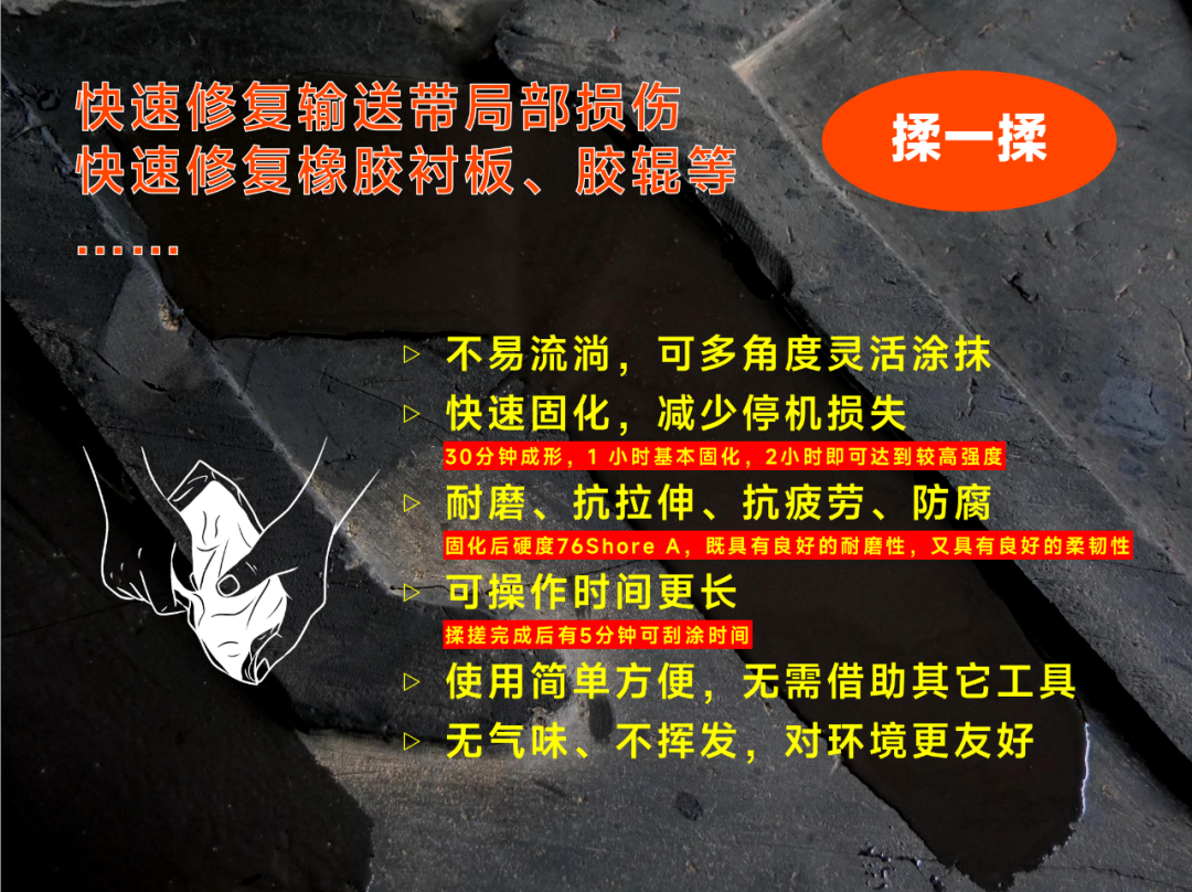 说明:本文主要用于介绍胶小新"揉一揉"-XN150 快速橡胶修剂的使用方法,其中输送带的修补方法仅供交流参考。